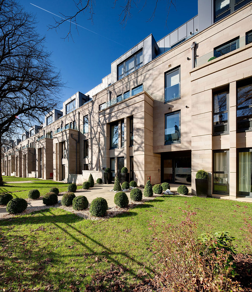 Devonshire Row is located within a leafy residential area in Glasgow’s West End, surrounded by listed Victorian terraces. This residential development was an enabling project for Hillhead Sports Club, who released a narrow strip of land along the boundary of their sports ground to raise funds for its regeneration.